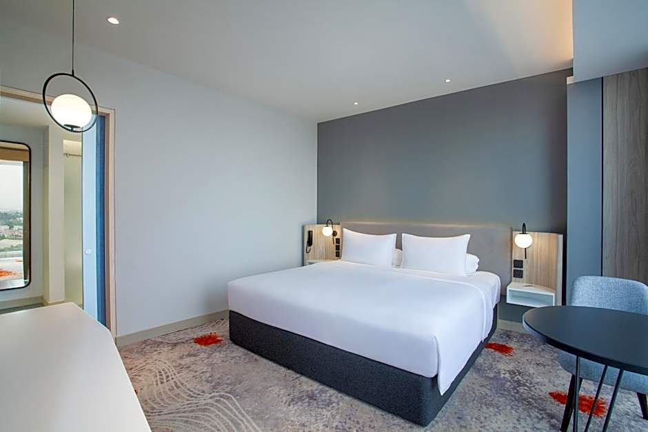 For downtime, an outdoor infinity pool offers a sleek place to unwind, complemented by a fully equipped fitness center for keeping routines on track. A free Kids’ Club adds a playful option for younger travelers, while complimentary perks like free parking and free Wifi make everyday plans easy and breezy.